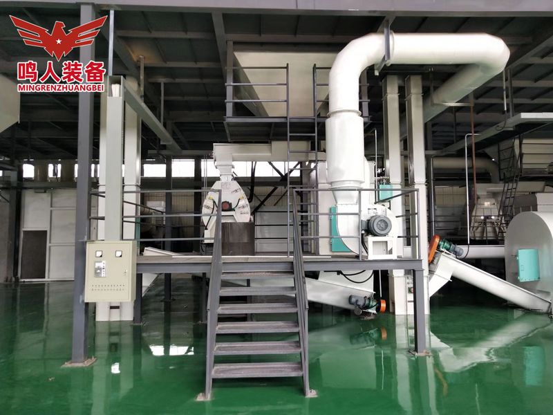 冷却工段后的压榨输送进入锤片式粉碎机,锤片在转子高速运转下将饼块粉碎形成粉末状,可根据不同客户对肉粉目数不同的要求对粉碎机滤网进行调换。粉因为肉粉含油率较高,风运输送容易堵塞管道,所以粉碎后的肉粉用斗式提升机输送至存料仓缓冲打包。